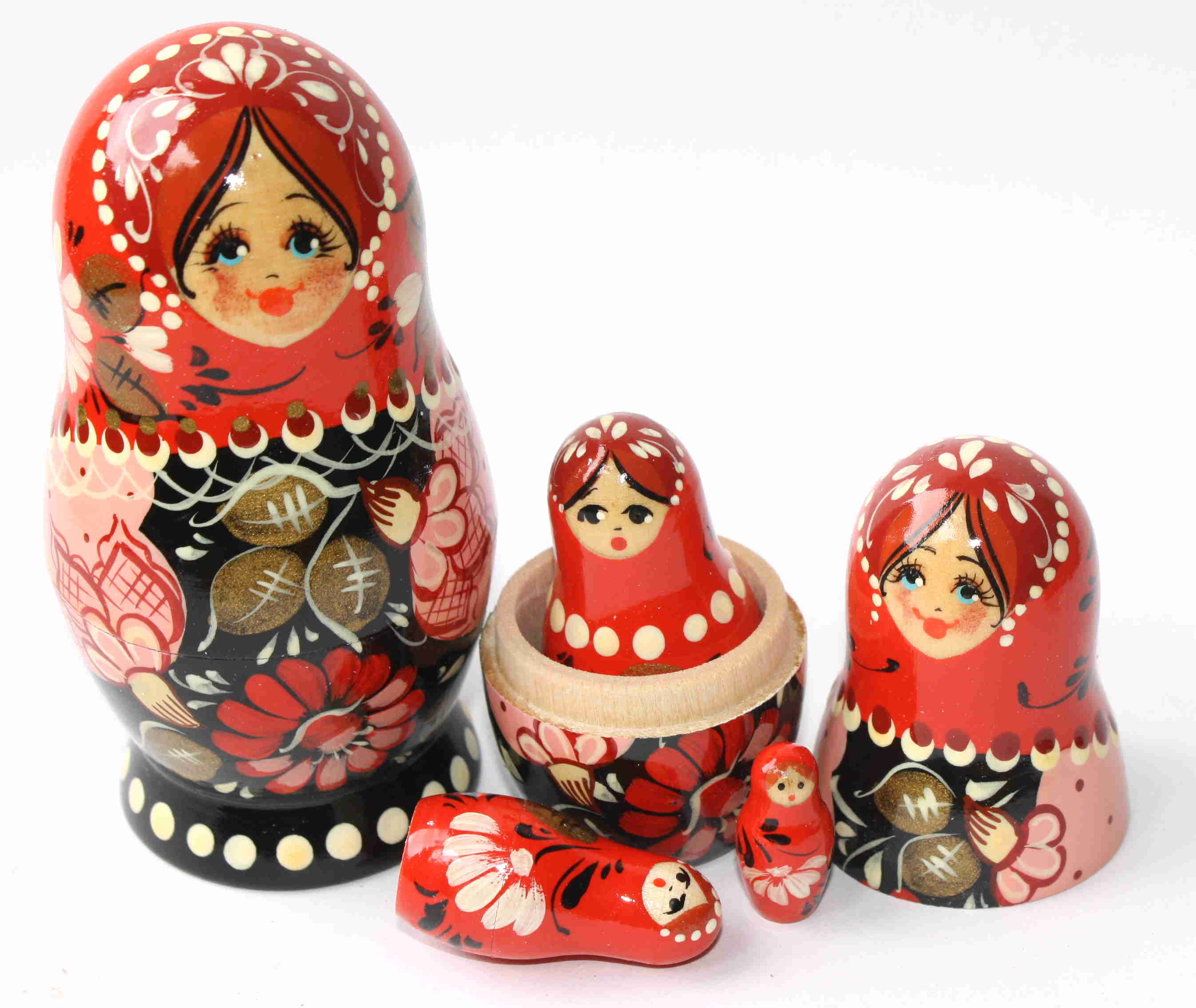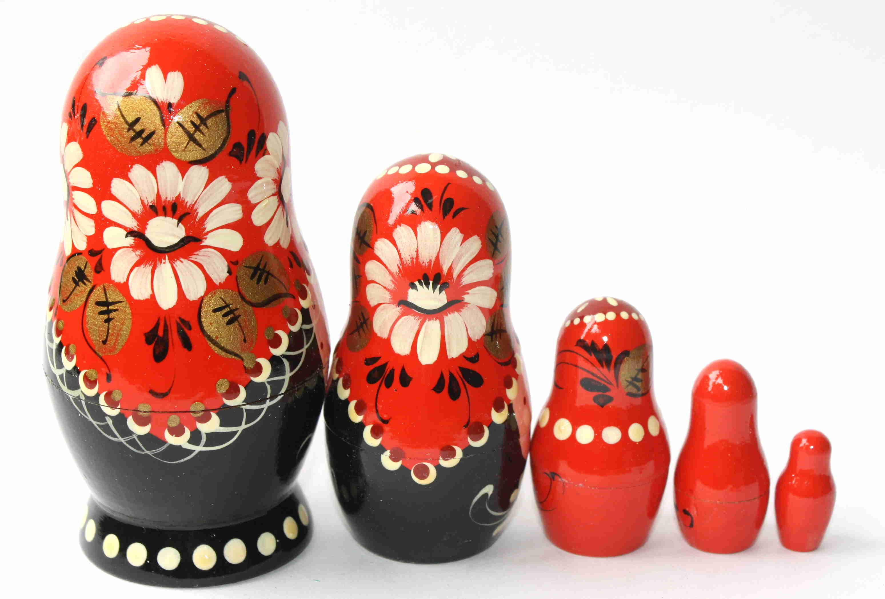 Artists Matryoshka – Black and Red with Pink Sleeves (5 Nested)