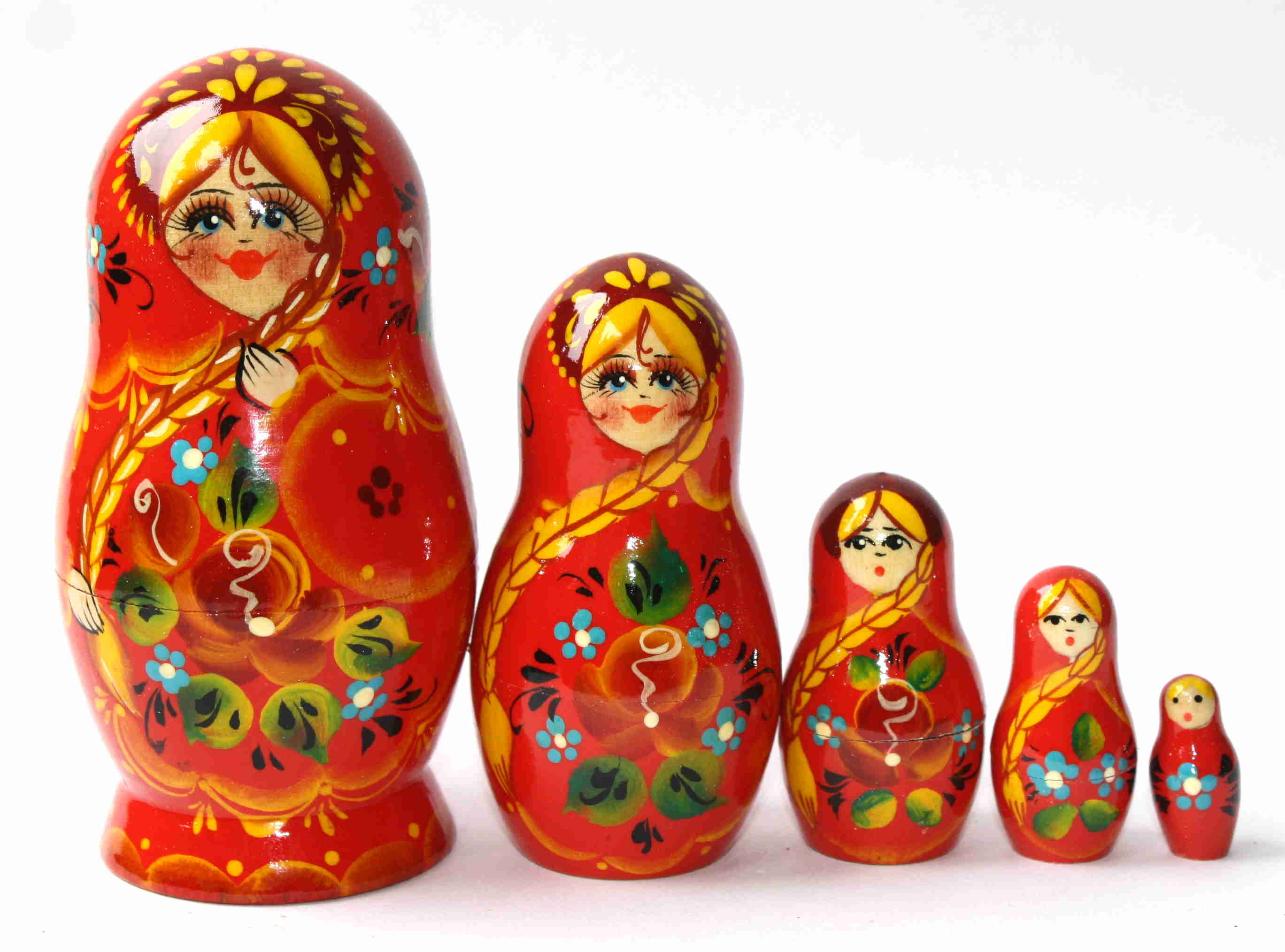Artists Matryoshka Red girl with flowers and plait (5 nested set)