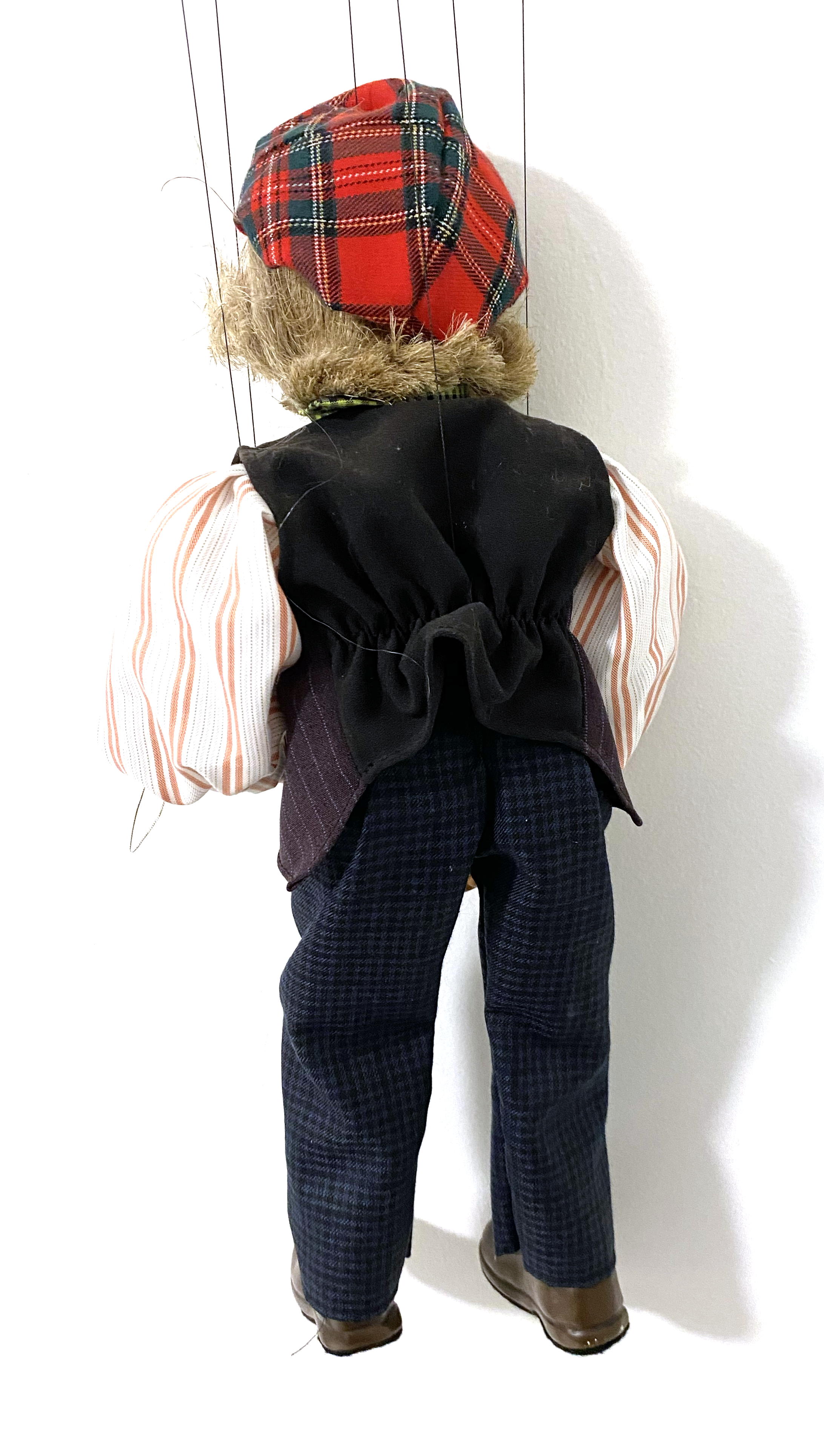 With his flowing bow, animated posture, and charmingly exaggerated features, the Violinist captures the spirit of street performance and bohemian flair. The marionette is made in ceramic and hand-painted with care, combining playful artistry with classic puppet theatre tradition. His limbs sway with character, bringing music and motion to life with every pull of the strings.
