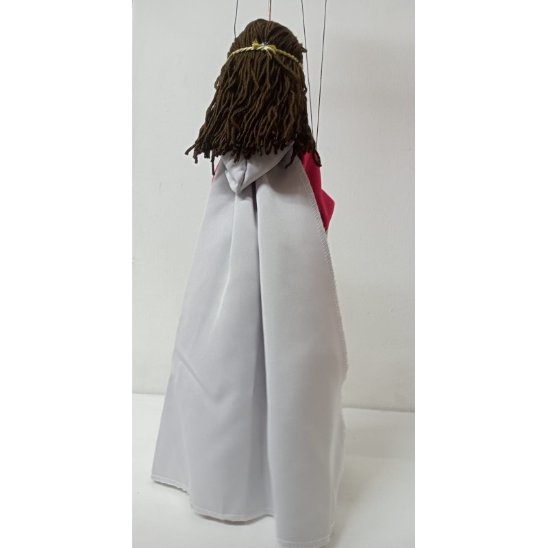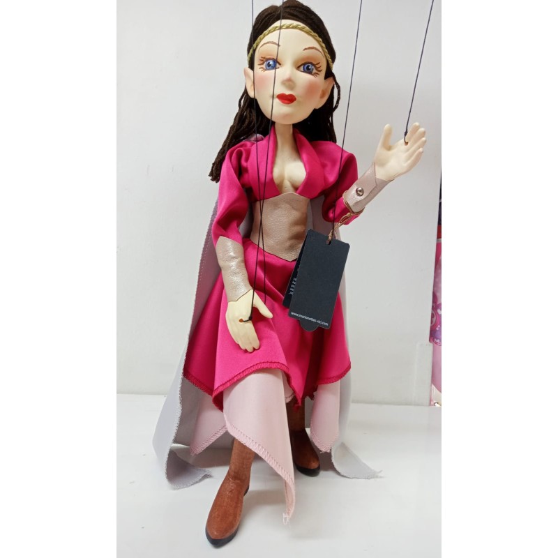 This beautiful elf puppet, dressed in shades of soft pink and fuchsia, is a magical addition to our Elf series. Hand-painted with care, her graceful features and detailed costume are sure to delight anyone who loves fantasy stories and films.