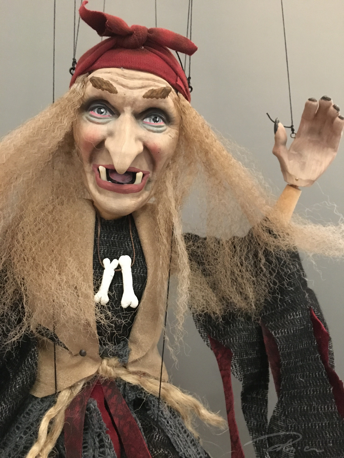 A line from an unforgettable Slavic fairytale – and the moment that inspired this take on Baba Yaga, the legendary forest witch. Rici has been crafting witch puppets since the early days, but this one’s had some extra love poured into her.