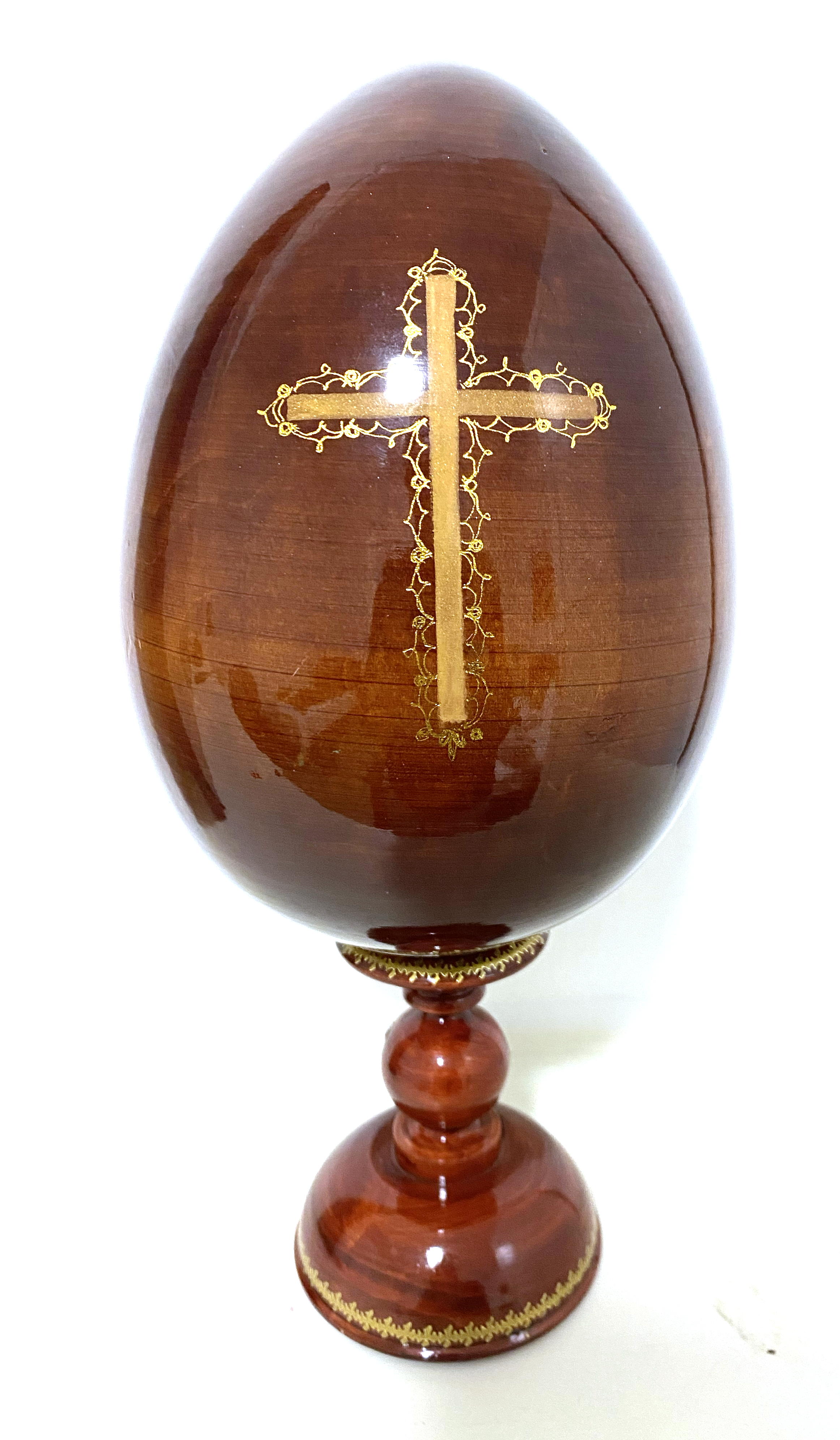 Crafted on a smooth wooden egg form — symbolising eternity and resurrection — this is both a work of art and a devotional object. Signed by the artist, it makes a meaningful gift or heirloom for those drawn to sacred art and Slavic tradition.