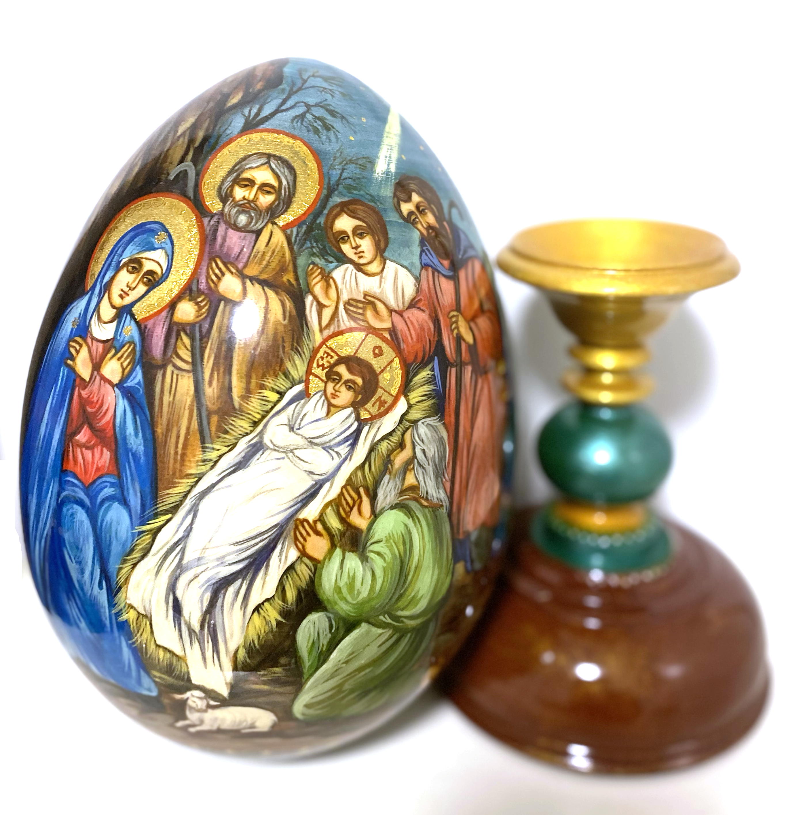 Wooden Egg Icon - The Nativity of Christ by Sergei Ryabov