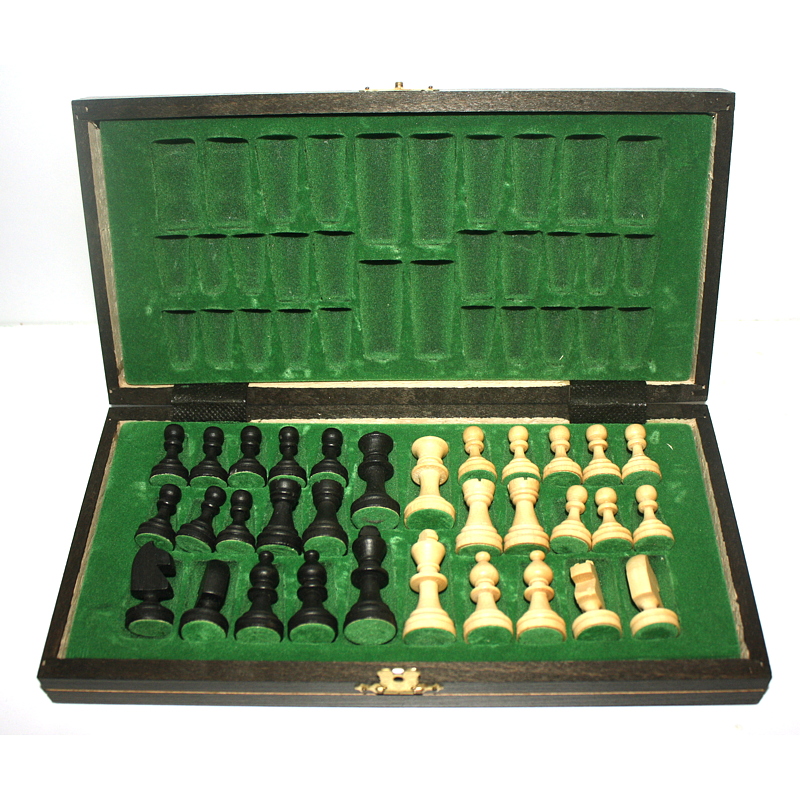 A handmade magnetic small wooden chess set from Poland in the Staunton Style.