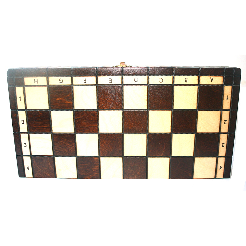 The folding board is also wood-burned by hand and includes two internal compartments to safely store all chess pieces when not in use.